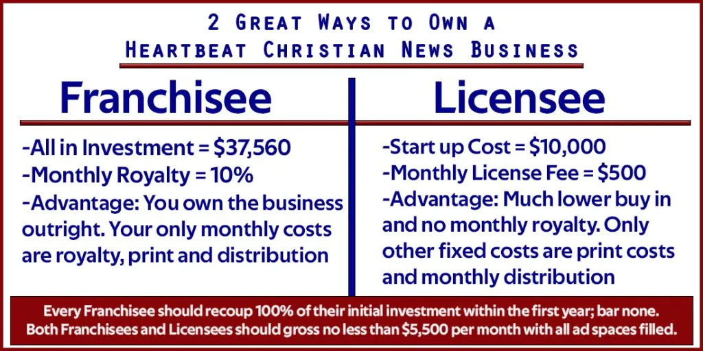 Discover the incentives that make Heartbeat Christian News Franchises unique and profitable